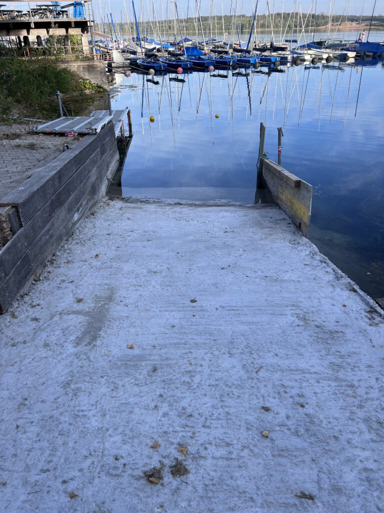 Die Sliprampe ist wieder offen und kann wieder genutzt werden. Die Gummimatten am Ende der Betonrampe sind befestigt.